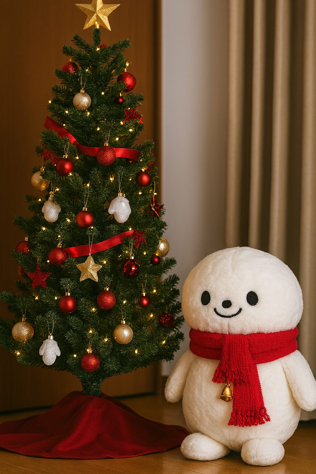 2年前に購入した「リルリンリン」のぬいぐるみ。今年もツリーのそばで、こじゃけ家のクリスマスを見守ってくれています。